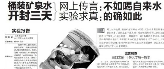 网上有传言称,桶装矿泉水开封3天后,比自来水里的细菌还要多得多,这是真的吗? 有媒体与医院人士进行了相关测验,不测不知道,一测吓一跳!