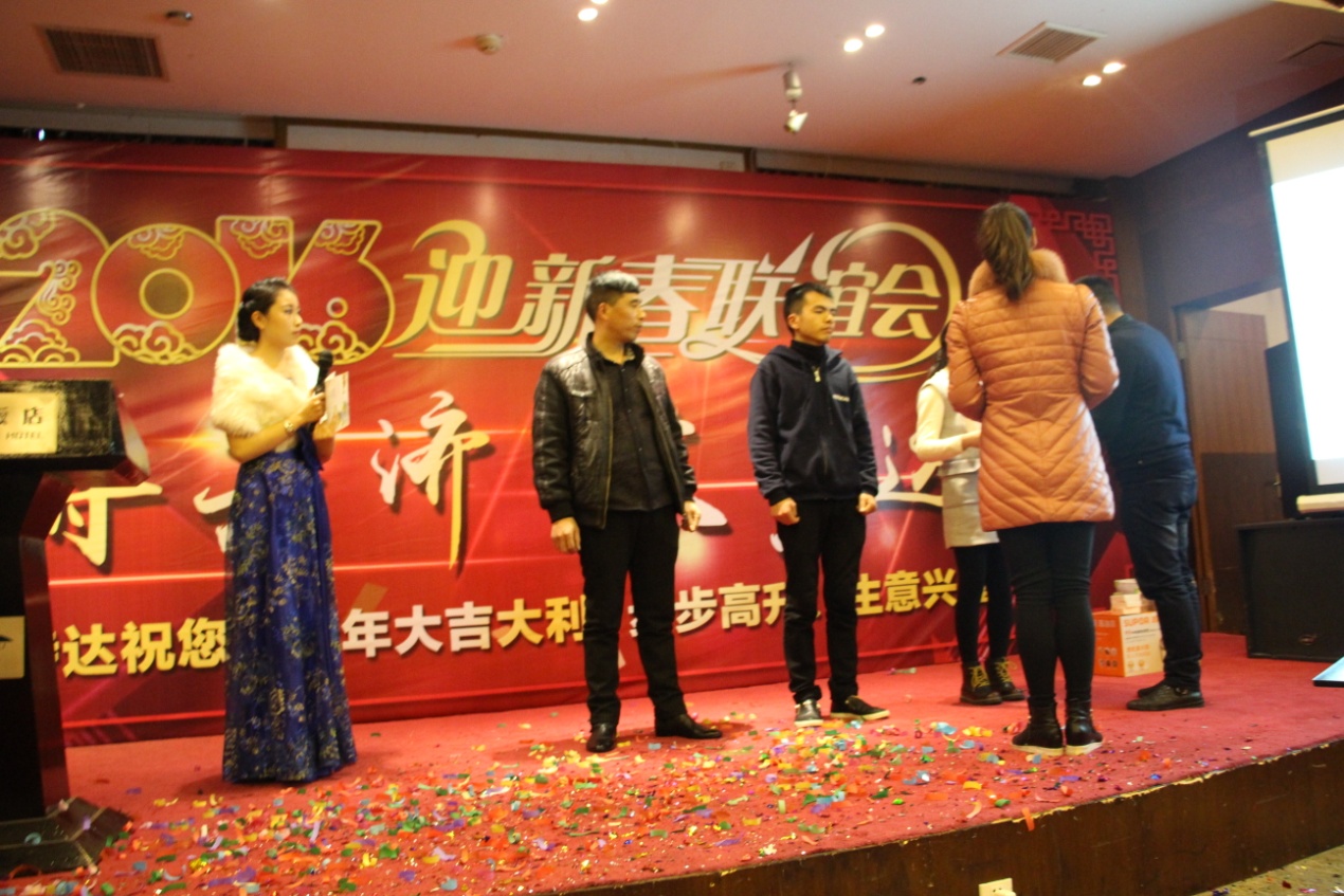 晚宴现场,生产部胡凯 电子琴表演给大家带来了精彩表演,现场气氛异常热烈。同时,家人们还自创自演了丰富多彩的文艺节目,如销售部李磊 段子+唱歌,销售部:小品:《千年等一回》等等精彩纷呈,赢得了台下观众的热烈掌声。年会重头戏——抽奖活动,也穿插在五彩缤纷的节目表演中,本次抽奖共分阳光奖,三等奖,二等奖,一等奖,随着层层大奖的抽取,不断掀起年会的高潮。据悉,现场共有30位幸运观众获奖,万众瞩目的终极大奖苏泊尔球釜电饭煲,更是被销售部的一位幸运儿收入囊中。整个年会在和谐、温馨、激情、欢乐的气氛中圆满落下帷幕。