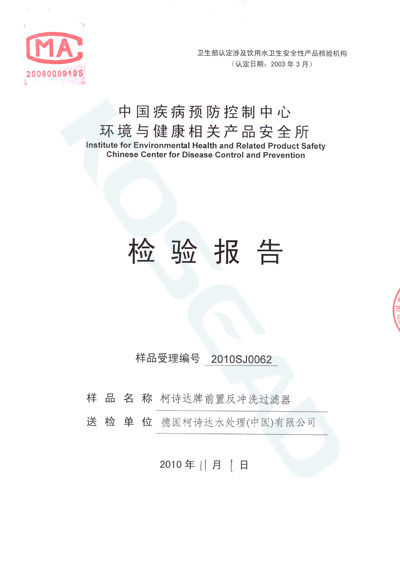 经过长达三个月的严格检验,我公司产品质量检验圆满通过中国疾病预防控制中心环境与健康相关产品安全所的检验。